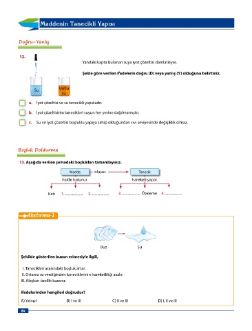 a. İyot çözeltisi ve su tanecikli yapıdadır.