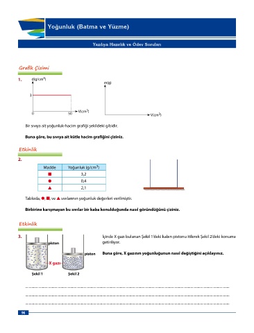 piston Buna göre, X gazının yoğunluğunun nasıl değiştiğini açıklayınız.
