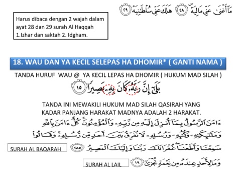 TANDA HURUF WAU @ YA KECIL LEPAS HA DHOMIR ( HUKUM MAD SILAH )