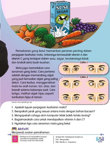 2. Berapakah jarak yang sesuai antara mata dengan bahan bacaan?