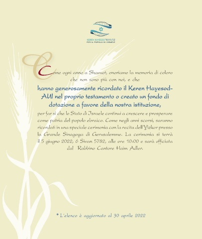 CCome ogni anno a Shavuot, onoriamo la memoria di coloro