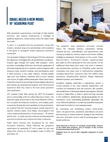 JCT created Cyber Elite during the 2017-18 academic By cultivating and maximizing Israel’s home-grown
