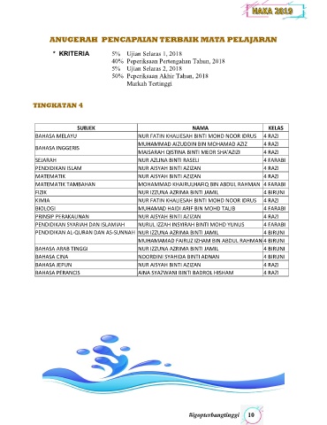 ANUGERAH PENCAPAIAN TERBAIK MATA PELAJARAN