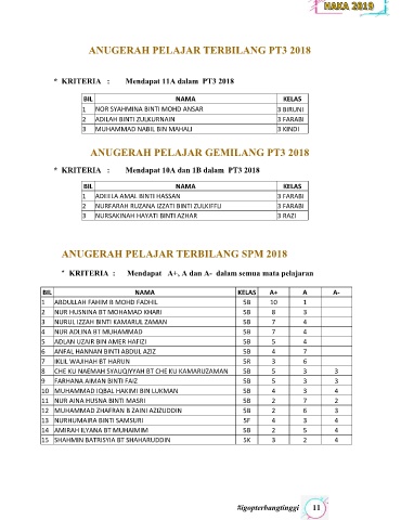 * KRITERIA : Mendapat 11A dalam PT1 2018