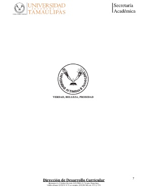 Secretaría Académica Dirección de Desarrollo Curricular 7 Matamoros 8 y 9 Edificio Rectoría. C.P. 87000, Cd. Victoria, Tamaulipas. Teléfono directo: (834)318 18 19 conmutador: (834)3181800, ext. 1272 y 1274.
