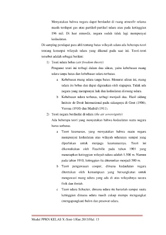 tentang konsepsi wilayah udara yang dikenal pada saat ini. Teori-teori