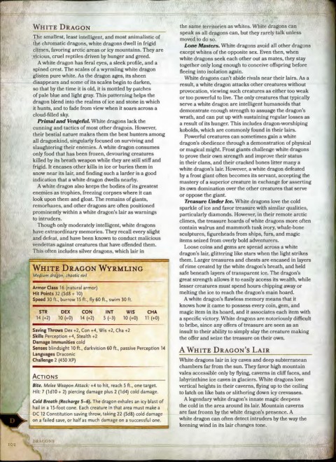 glisten pure white. As the dragon ages, its sheen White dragons can't abide rivals near their lairs. As a