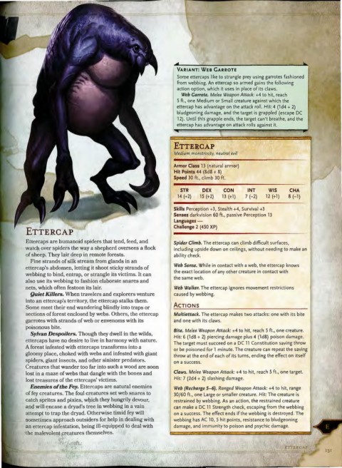 lost treasures of the ettercaps' victims. Hit: 7 (2d4 + 2) slashing damage.