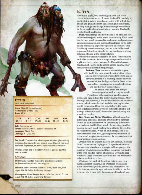 Multiattack. The ettin makes two attacks: one with its Whatever the truth of the ettins' origin, orcs treat