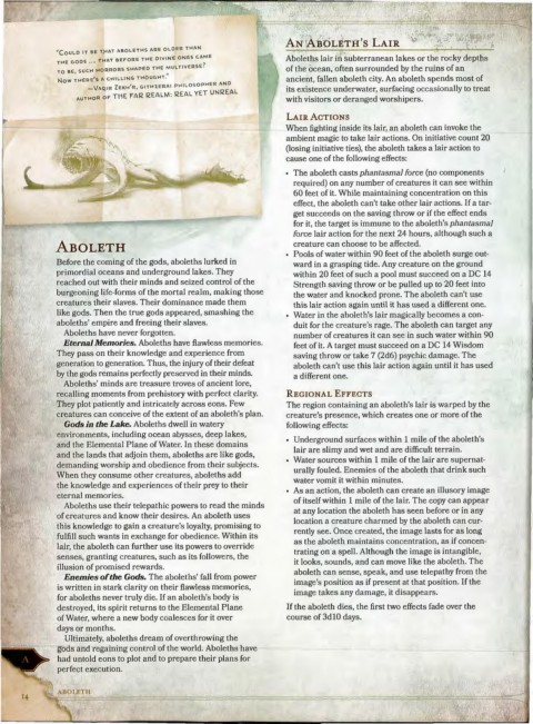 HAT BEFORE THE DIVINE ONES CAME Aboleths lair in subterranean lakes or the rocky depths