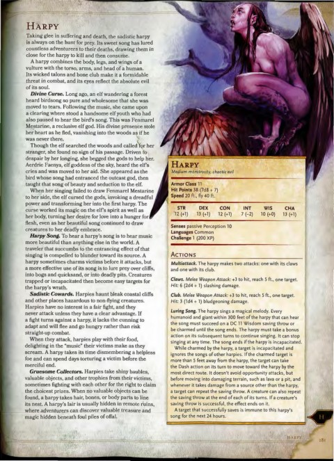 When they attack, harpies play with their food, singing at any time. The song ends if the harpy is incapacitated.