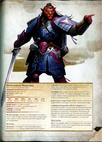 Martial Advantage. Once per turn, the hobgoblin can deal an hobgoblin. A creature can benefit from only one Leadership die