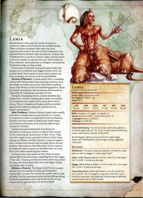 free to die while wandering the wastes. Multiattack. The lamia makes two attacks: one with its claws