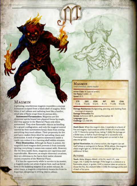 Fiery Destruction. Although its flame is potent, the Ignited Illumination. As a bonus action, the magmin can set