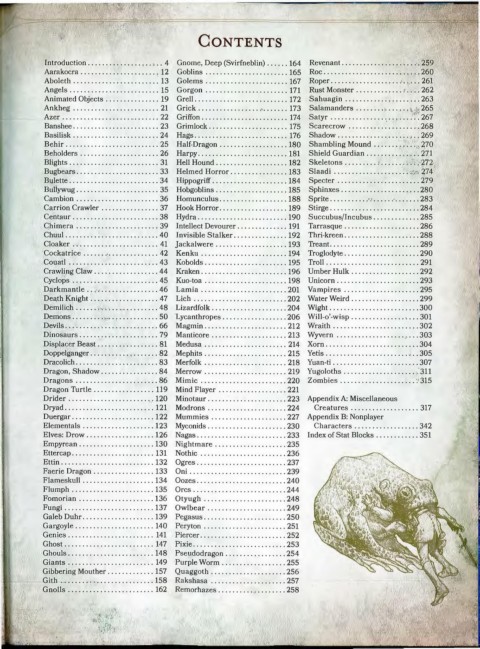 Cockatrice .. . ... . .... .. .. .. .. .. 42 Kenku . . ..... . ........ . .... . .. 194 Troglodyte .. . .. . ..... .. . . ...... 290