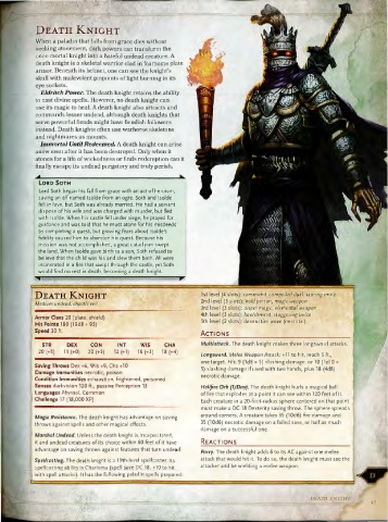 Spellcasting. The death knight is a 19th-level spellcaster. Its attack that would hit it. To do so, the death knight must see the