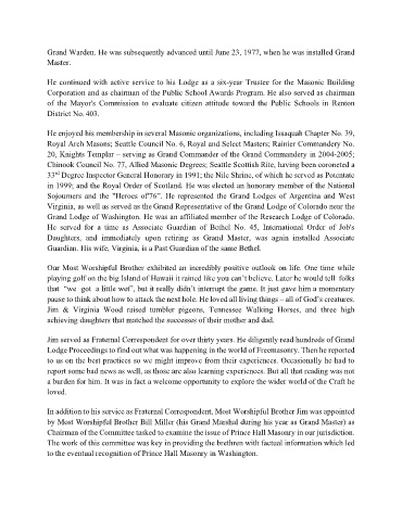 Grand Warden. He was subsequently advanced until June 23, 1977, when he was installed Grand