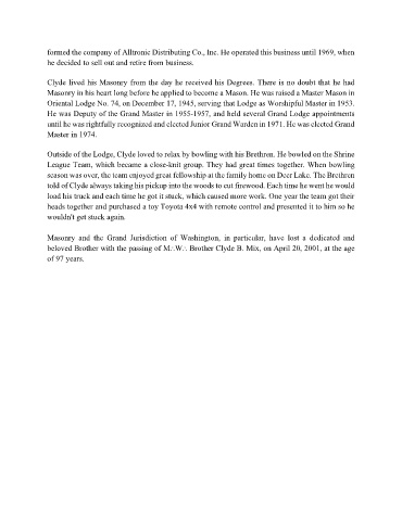 Clyde lived his Masonry from the day he received his Degrees. There is no doubt that he had