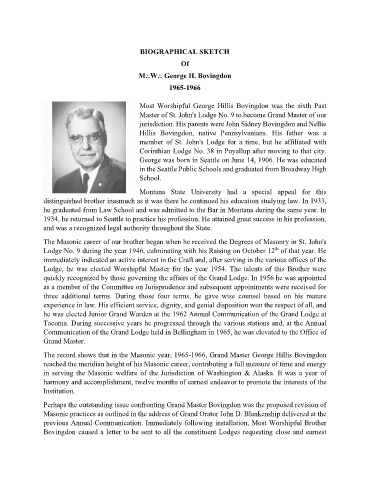 The record shows that in the Masonic year, 1965-1966, Grand Master George Hillis Bovingdon