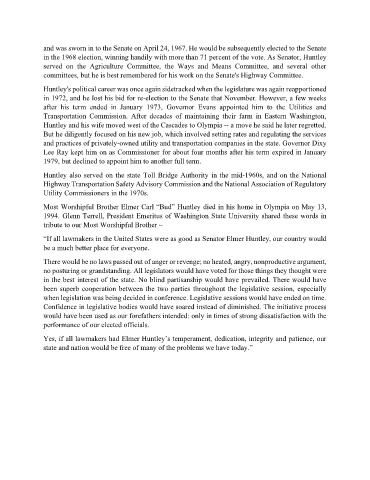 in the 1968 election, winning handily with more than 71 percent of the vote. As Senator, Huntley
