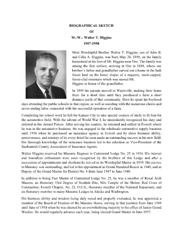 Walter Higgins received his Masonic Degrees in Centennial Lodge No. 25 in 1934. His interest