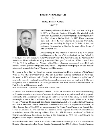 Most Worshipful Brother Herbert A. Davis was born on August