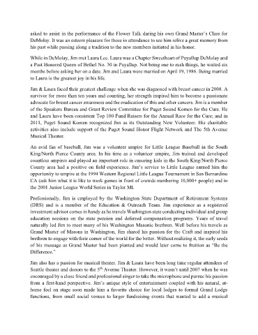 Grand Master of Masons in Washington, Jim shared his passion for the Craft and inspired his