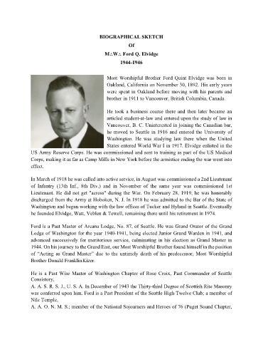 Ford is a Past Master of Arcana Lodge, No. 87, of Seattle. He was Grand Orator of the Grand