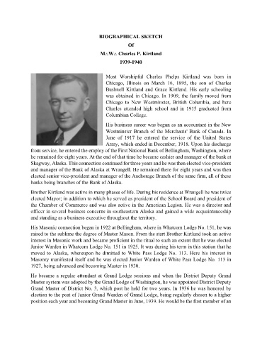 moved to Alaska, whereupon he dimitted to White Pass Lodge No. 113. Here his interest in