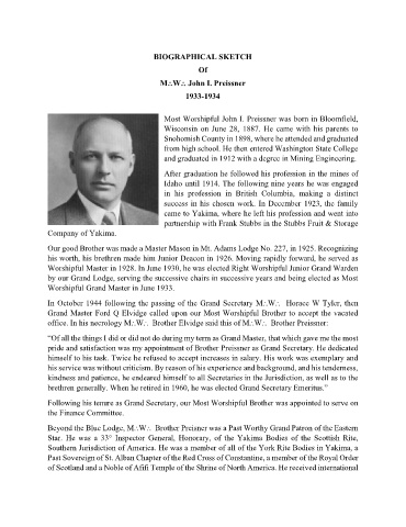 office. In his necrology M⸫W⸫ Brother Elvidge said this of M⸫W⸫ Brother Preissner: