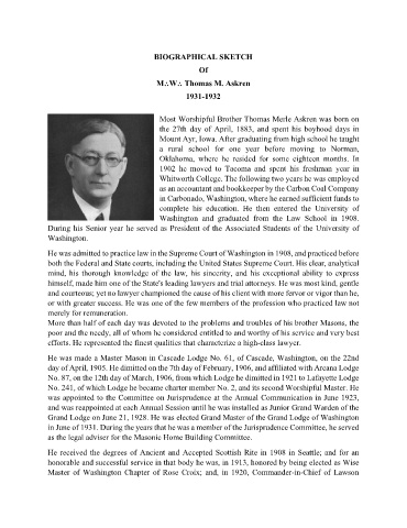 He was made a Master Mason in Cascade Lodge No. 61, of Cascade, Washington, on the 22nd