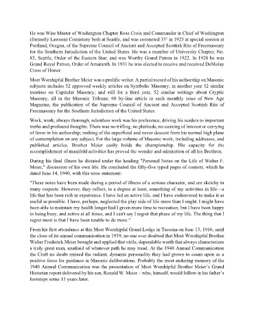 Most Worshipful Brother Meier was a prolific writer. A partial record of his authorship on Masonic