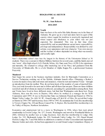 Corporation until 1995. It was in Dayton that Sam was Initiated, Passed and Raised in 1982 by