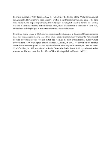 advance until he was elected to the office of Most Worshipful Grand Master in 1922.