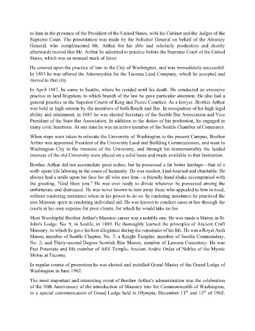 ability and attainment, in 1883 he was elected Secretary of the Seattle Bar Association and Vice