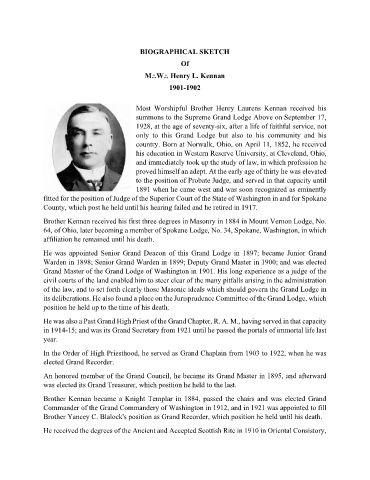 Brother Kennan received his first three degrees in Masonry in 1884 in Mount Vernon Lodge, No.