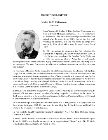 He was made a Mason in Ashlar Lodge, No, 91, of Detroit, Michigan. He affiliated with Spokane