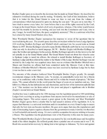 The outcome of this situation bothered Most Worshipful Brother Ziegler greatly. He strongly