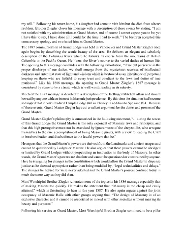 manhood.” Like his 1886 message, the opening to Grand Master Ziegler’s 1887 message is
