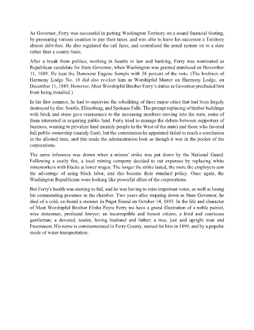 Freemason. His name is commemorated in Ferry County, named for him in 1899, and by a popular