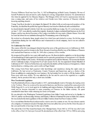 Thomas Milburne Reed was born Dec. 8, 1825 at Sharpsburg, in Bath County, Kentucky. He was of
