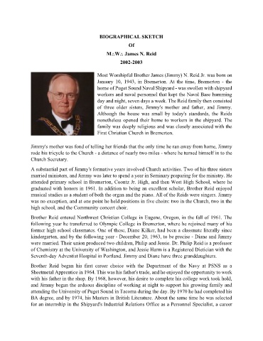 Most Worshipful Brother James (Jimmy) N. Reid Jr. was born on