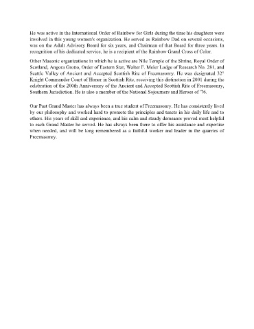 He was active in the International Order of Rainbow for Girls during the time his daughters were
