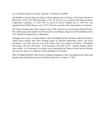 Grand Lodge until he passed to the Celestial Lodge above on April 17, 2005.