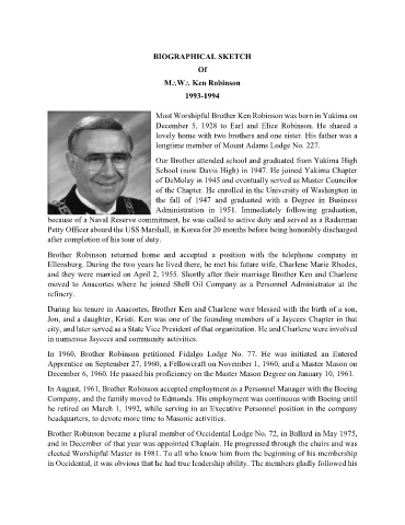 Most Worshipful Brother Ken Robinson was born in Yakima on
