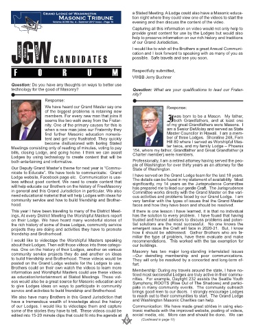 technology for the good of Masonry? Question: What are your qualifications to lead our Frater-