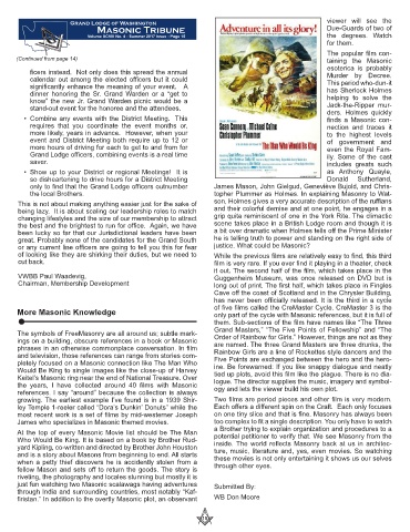 • Combine any events with the District Meeting. This finds a Masonic con-