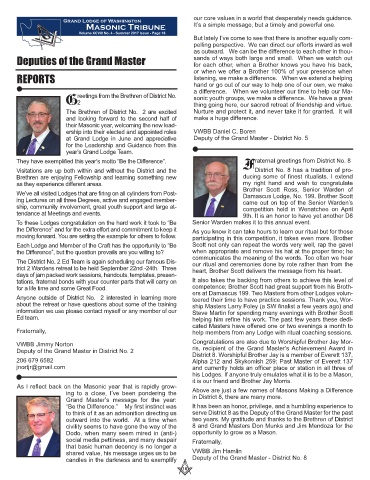 at Grand Lodge in June and appreciative Deputy of the Grand Master - District No. 5
