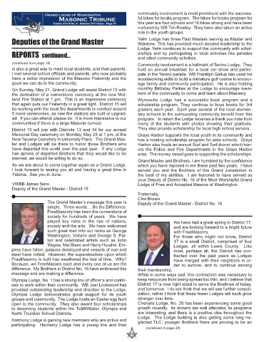 The Grand Master’s message this year is Deputy of the Grand Master - District No. 16