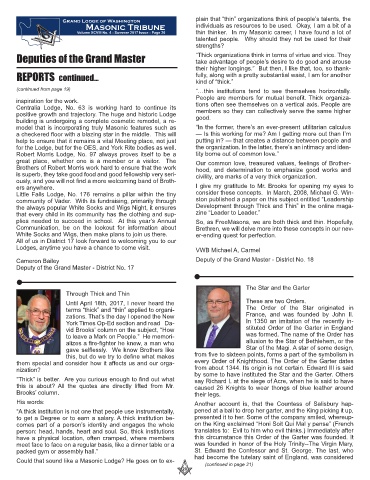 Volume XCVIII No. 4 - Summer 2017 Issue - Page 20 thin thinker. In my Masonic career, I have found a lot of